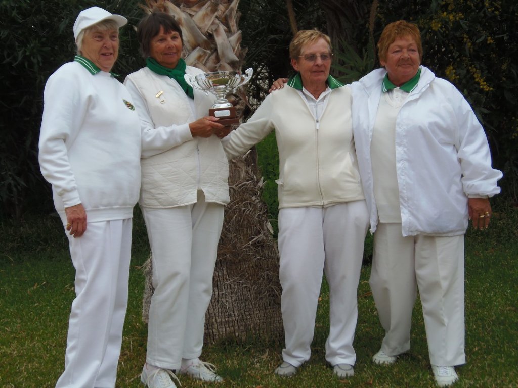 Ladies Singles – Barbara Davies (IND) started slow when Diane Reynolds (MOJ) had an early lead at 5-1. Barbara then settled down and both players gave their all with no one making any significant lead until the twenty-first end when Barbara had a four point lead at 20-16. Diane then scored three shots on the next end with the score at 20-19. The next end was crucial and Diane was holding two shots she required. Unfortunately she knocked one of Barbara’s woods up to give her the championship.