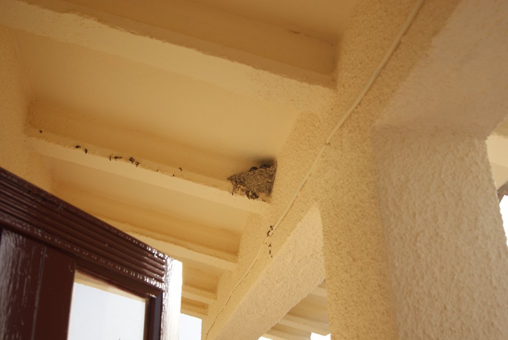 For those ornithologists amongst us and worried about the birds nests being preserved (see photographs) I am reliably informed by Jim Pike the first brood of five babies in each nest have been hatched and flying about, waiting for the second brood to be born. They will of course get stronger and wait with their parents to help feed them when hatched. Short time after when they are fit and strong enough they return home to Africa .
