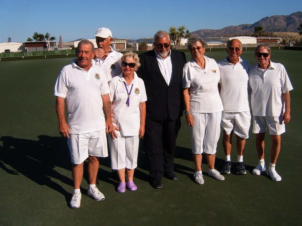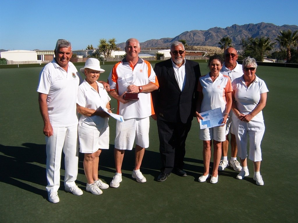 Prize giving took place on the Almeria Veranda. Our Captain Colin Wright then asked our Sponsor, Brian White of Scottsdale Overseas,to present theprizes. Both Colin and yours truly thanked all those players taking part, Stan Brisco for umpiring and doing a great job in timing the games, Sandra Bain for administrating the competition, controlling score cards and results.