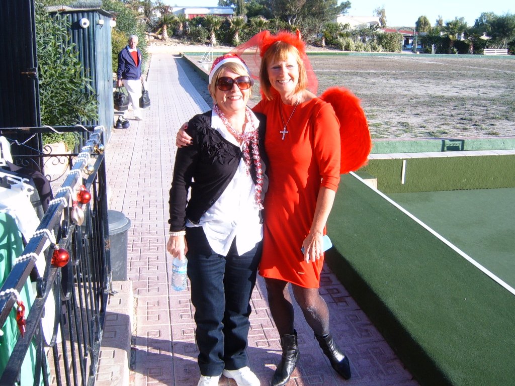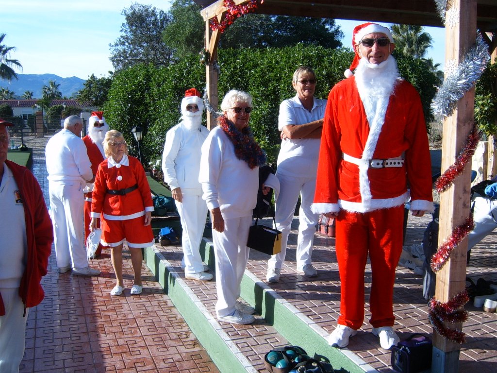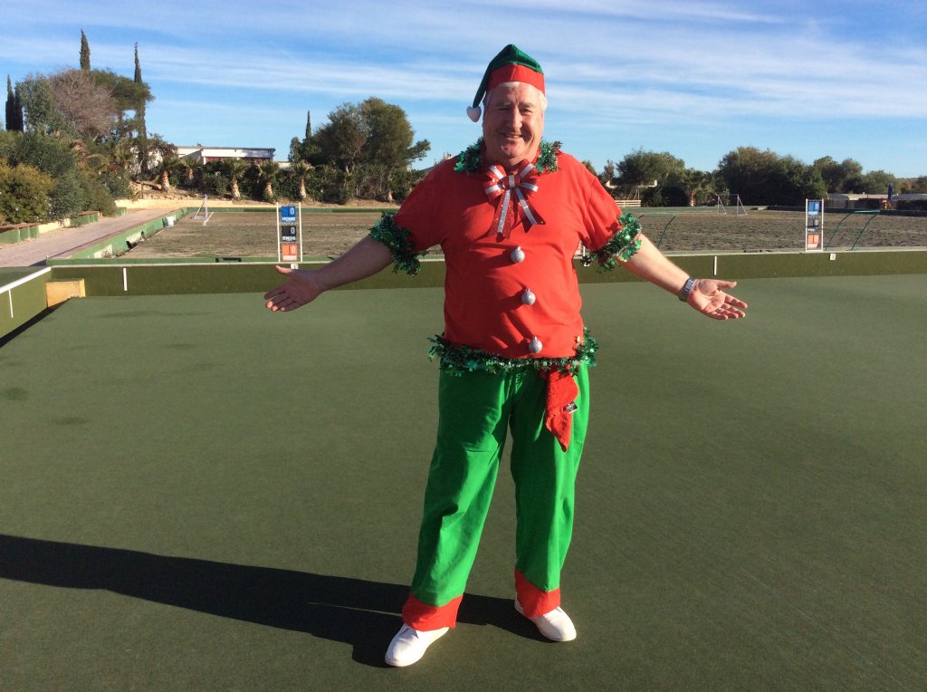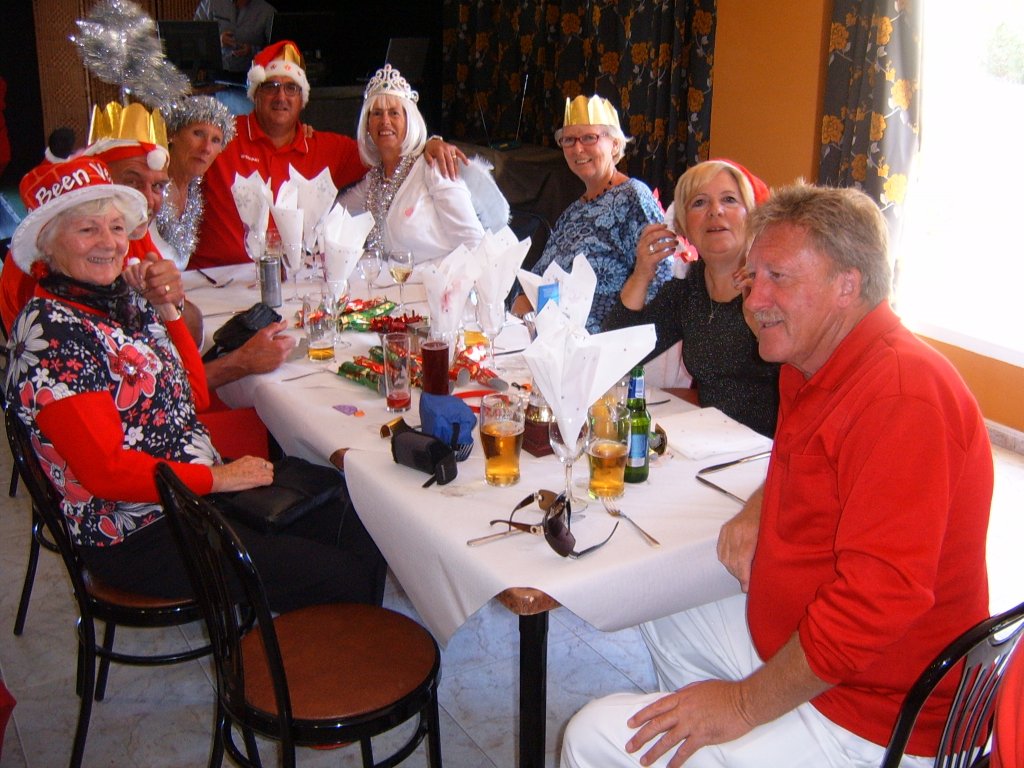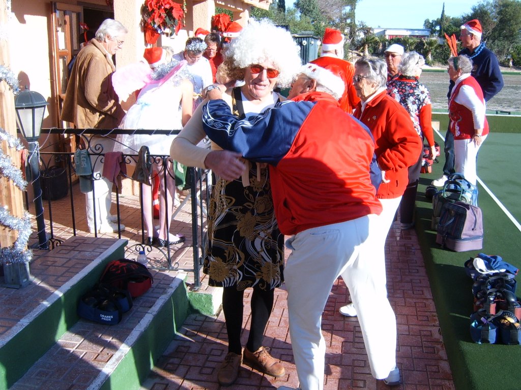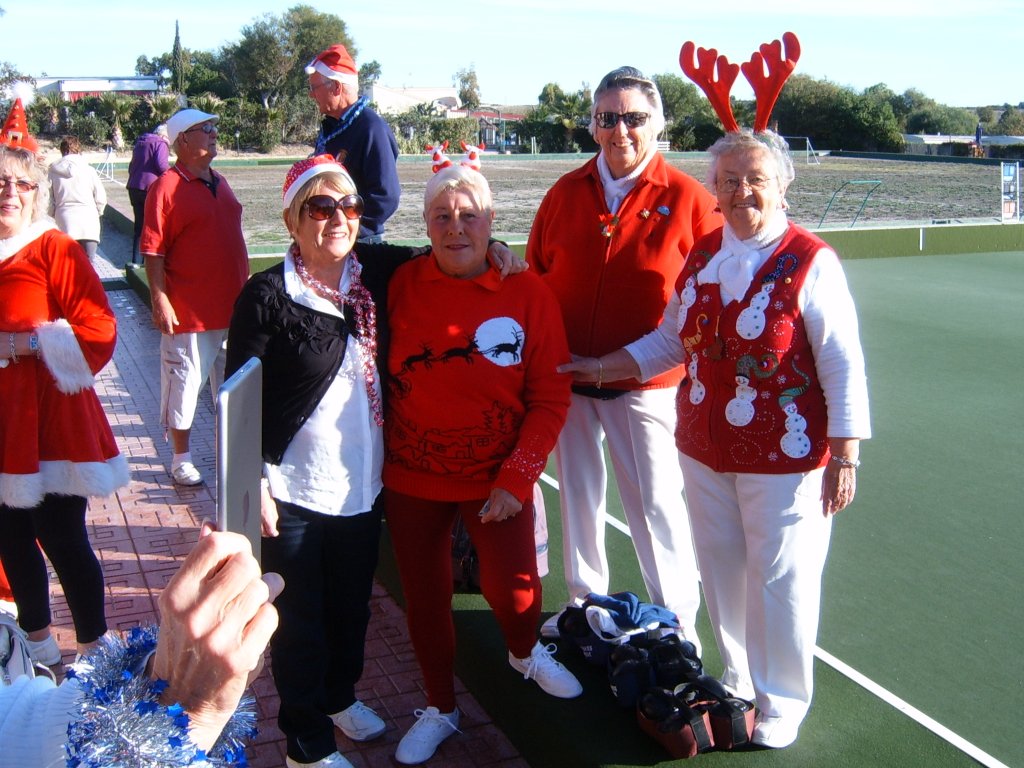 Most members were dressed traditionally in Christmas attire and thoroughly enjoyed their game. A ‘Spider’ was played where Pat Deacon won a bottle of Brandy. During this Dot Lloyd and friend judged the members for the best fancy dress. Sandra Brown presented prizes to the winning lady, Julie John with Catherine Patrick coming in second place, both dressed as fairies. Stuart Beetham was the best man with John Burgess coming second. After bowls everyone retired to the Miraflores Patio for refreshments prior to the Christmas Lunch. As usual the Carvery was excellent and the sweet just as good.