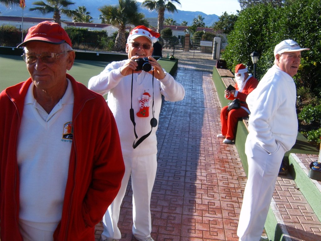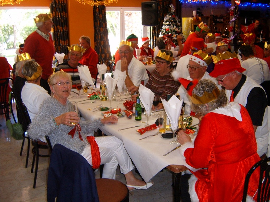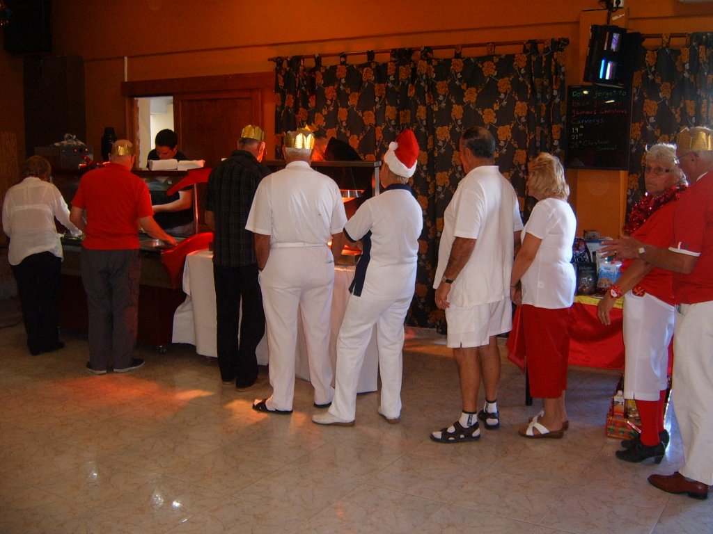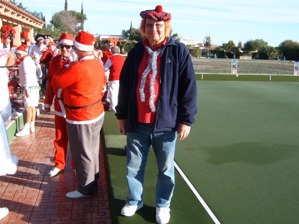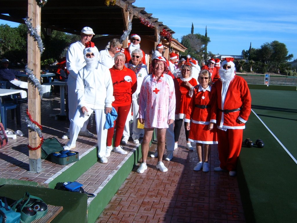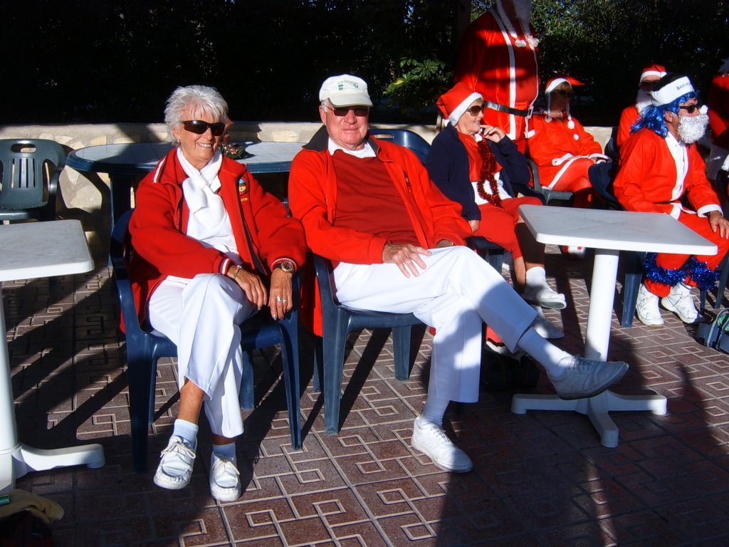 Most members were dressed traditionally in Christmas attire and thoroughly enjoyed their game. A ‘Spider’ was played where Pat Deacon won a bottle of Brandy. During this Dot Lloyd and friend judged the members for the best fancy dress. Sandra Brown presented prizes to the winning lady, Julie John with Catherine Patrick coming in second place, both dressed as fairies. Stuart Beetham was the best man with John Burgess coming second. After bowls everyone retired to the Miraflores Patio for refreshments prior to the Christmas Lunch. As usual the Carvery was excellent and the sweet just as good.