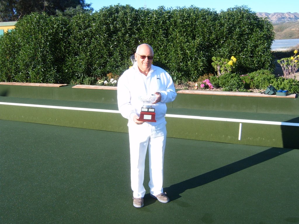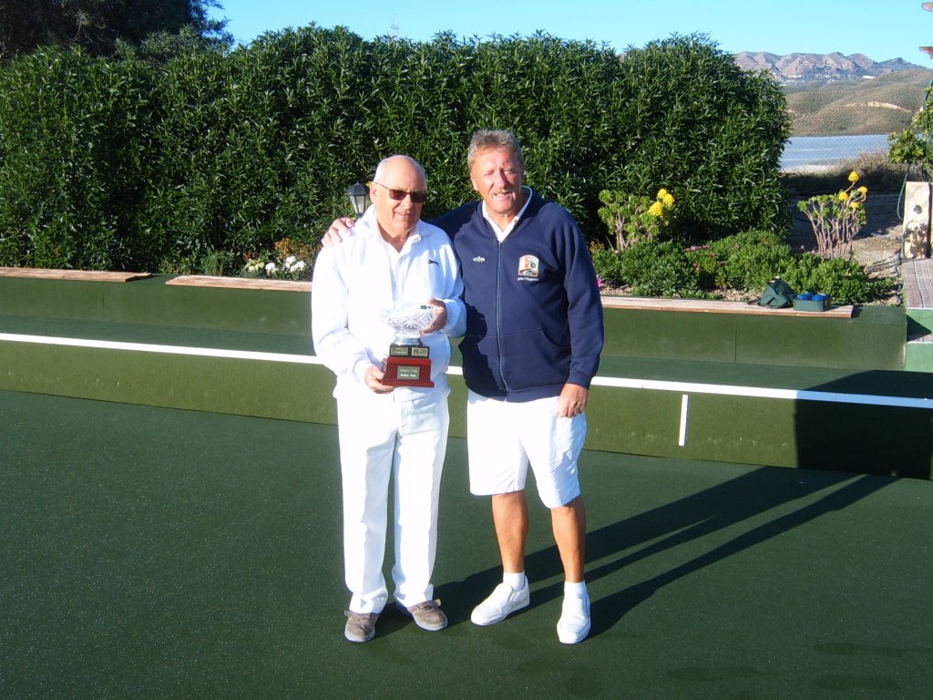 The winner was Reg Birmingham playing off scratch, who was successful over last year’s winner, John Fitzgerald also on a scratch handicap The Final was played on Tuesday afternoon 16th December and it was great to see so many spectators looking on and supporting both players despite the inclement cold weather. As expected this game went to the wire. Both players played superb quality bowls throughout despite suffering with the very cold weather. Reg surged into a good lead on the fifteenth end with the score at 18-7. John then appeared to wake up and started playing as we are used to seeing him in action. Reg, was still ahead on the twenty-first end at 19-16 although he hadn’t scored for five ends. John then went ahead scoring two shots on the next two ends at 20-19, but was unable to contain Reg who scored two shots on the next end, to give him a well-deserved championship. By this time it was close to needing floodlights!!!
